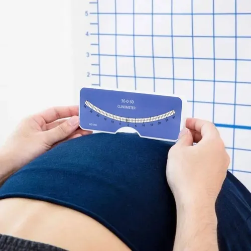 3. Medição com escoliômetro: ângulos acima de 5–7 graus já exigem investigação radiográfica;