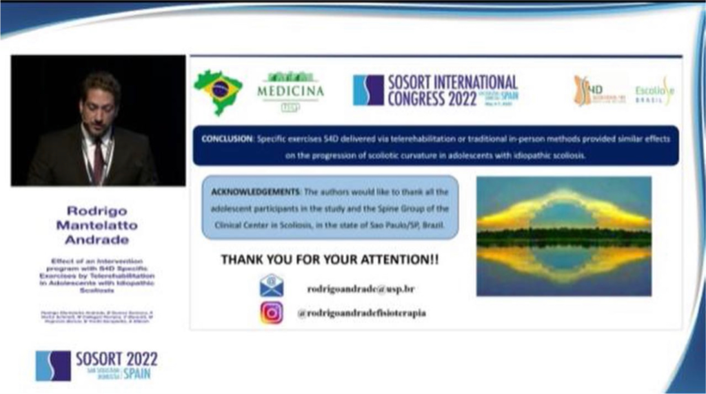 APRESENTAÇÃO DO MÉTODO S4D – BRAZILIAN METHOD NO CONGRESSO DA SOSORT 2021 (MAIOR CONGRESSO SOBRE O TRATAMENTO NÃO-CIRÚRGICO DA ESCOLIOSE NO MUNDO) – CONCORREU AO PODIUM DOS MELHORES TRABALHOS DO ANO: